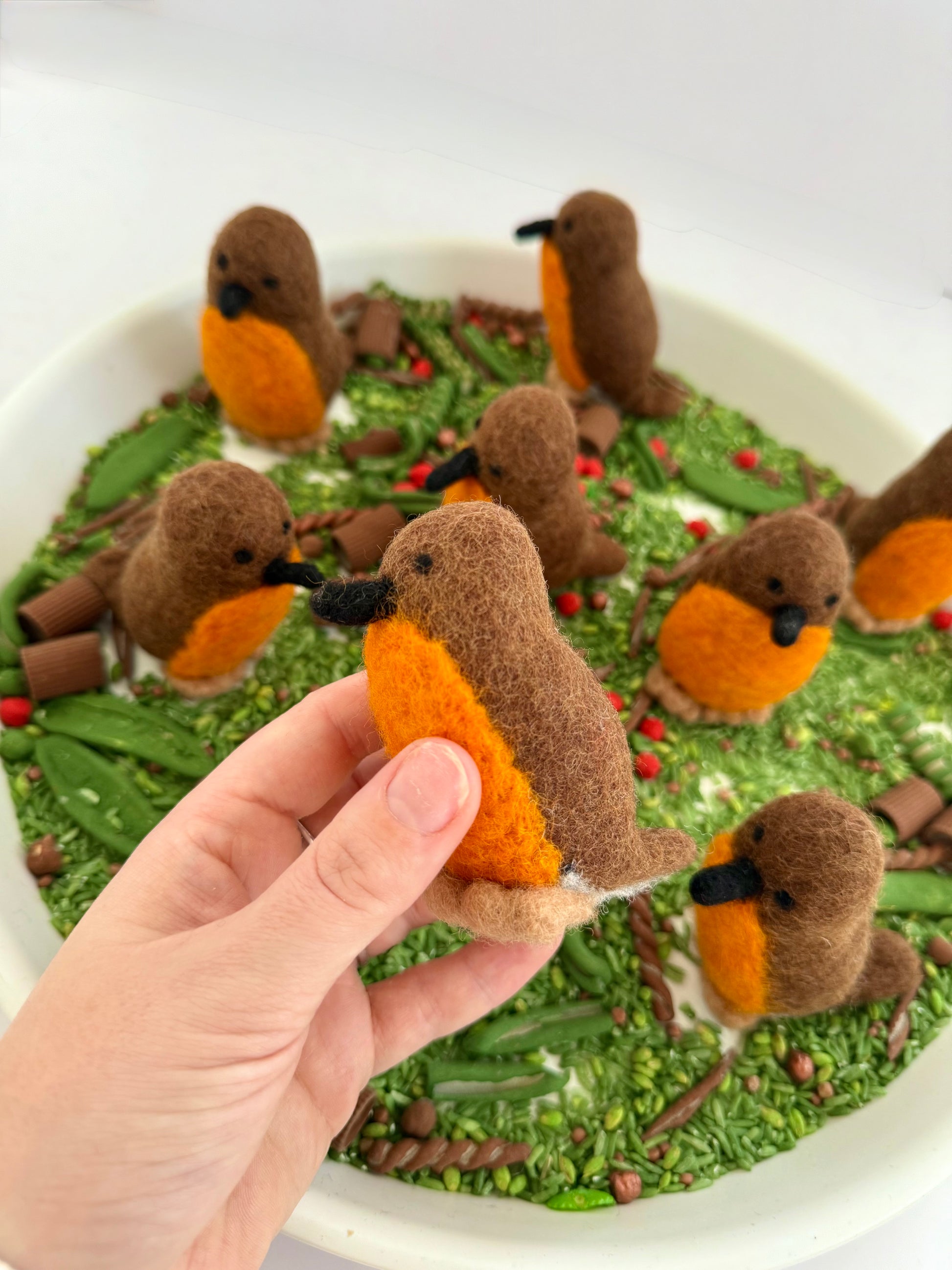 These sweet little felt robins are ready to hop into festive play! With their bright orange bellies and soft, woolly bodies, they’re perfect for small-world setups, winter storytelling, and charming Christmas scenes. A cheerful flock for imaginative little hands.