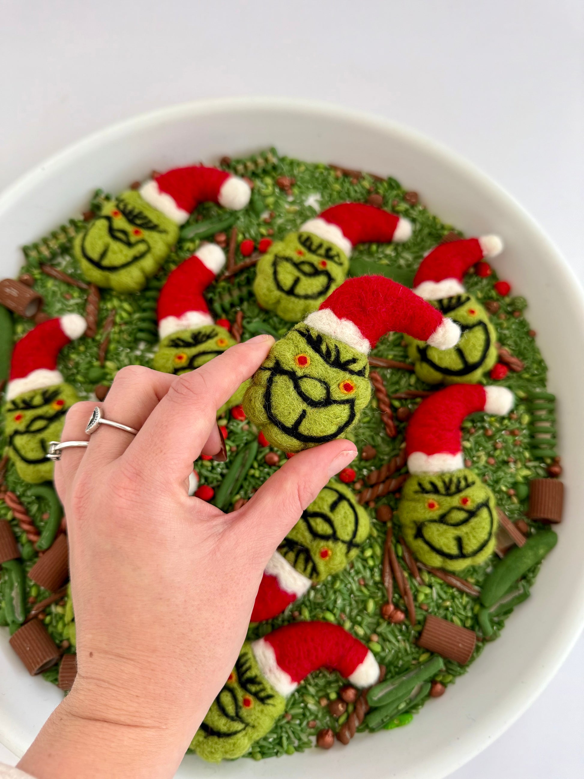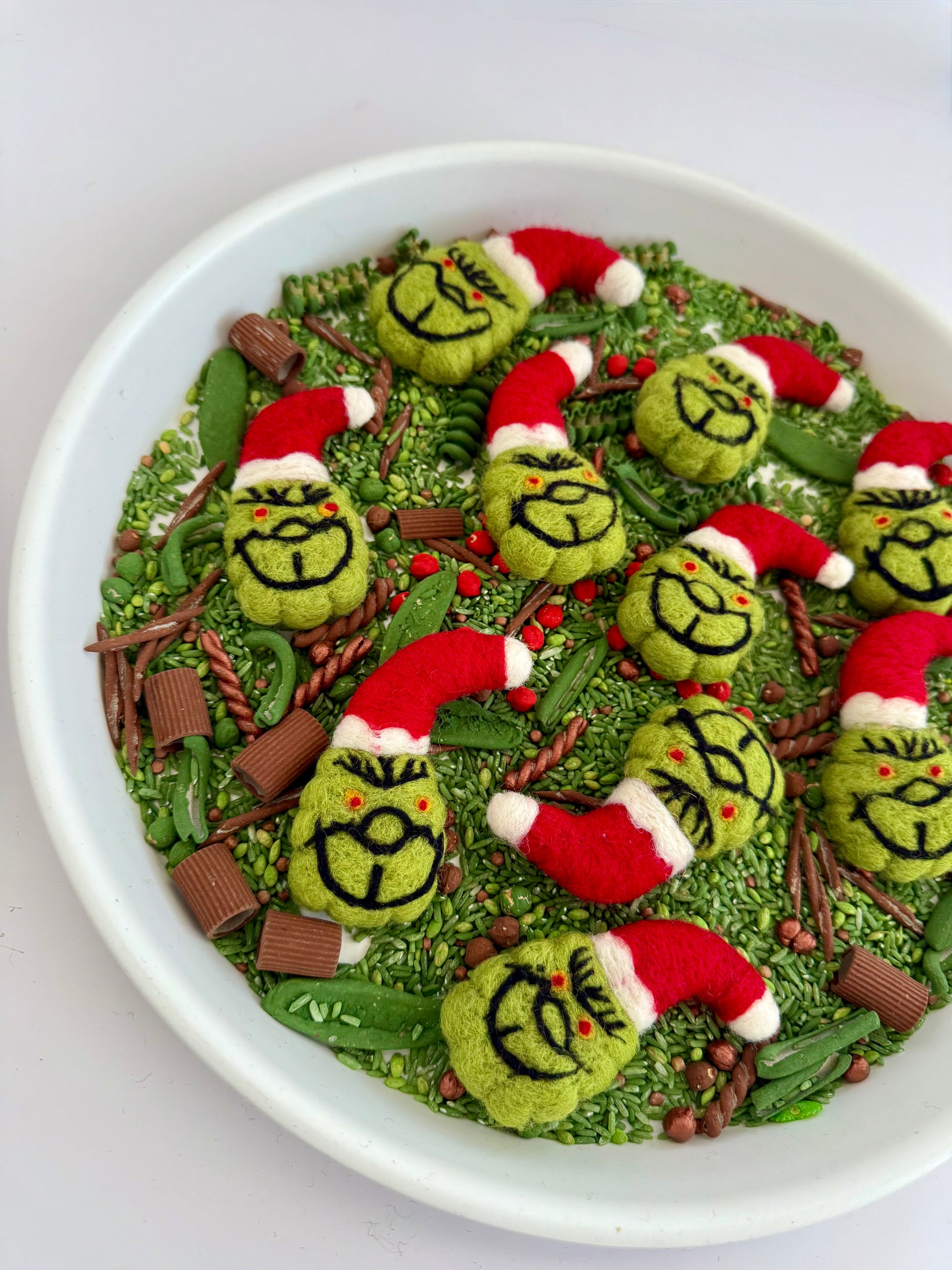 These mischievous little Grinch faces are ready to stir up some holiday giggles! With their cheeky grins and festive Santa hats, they’re perfect for Christmas-themed small-world play, story setups, and imaginative fun. A quirky, colourful addition to any festive collection and sensory bins