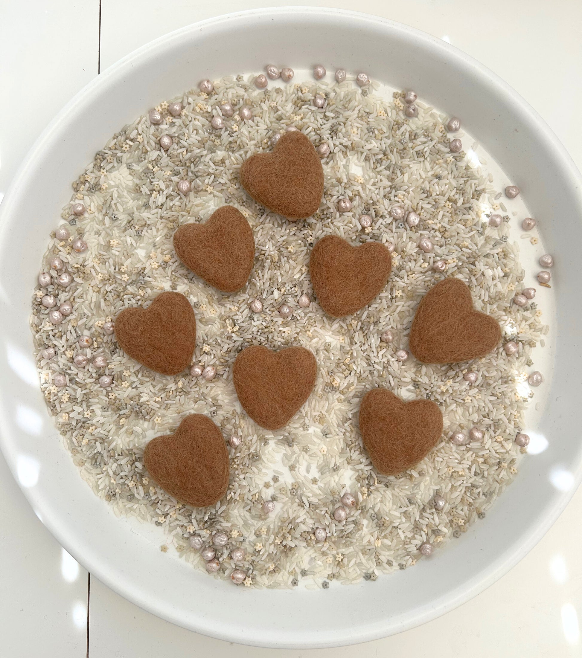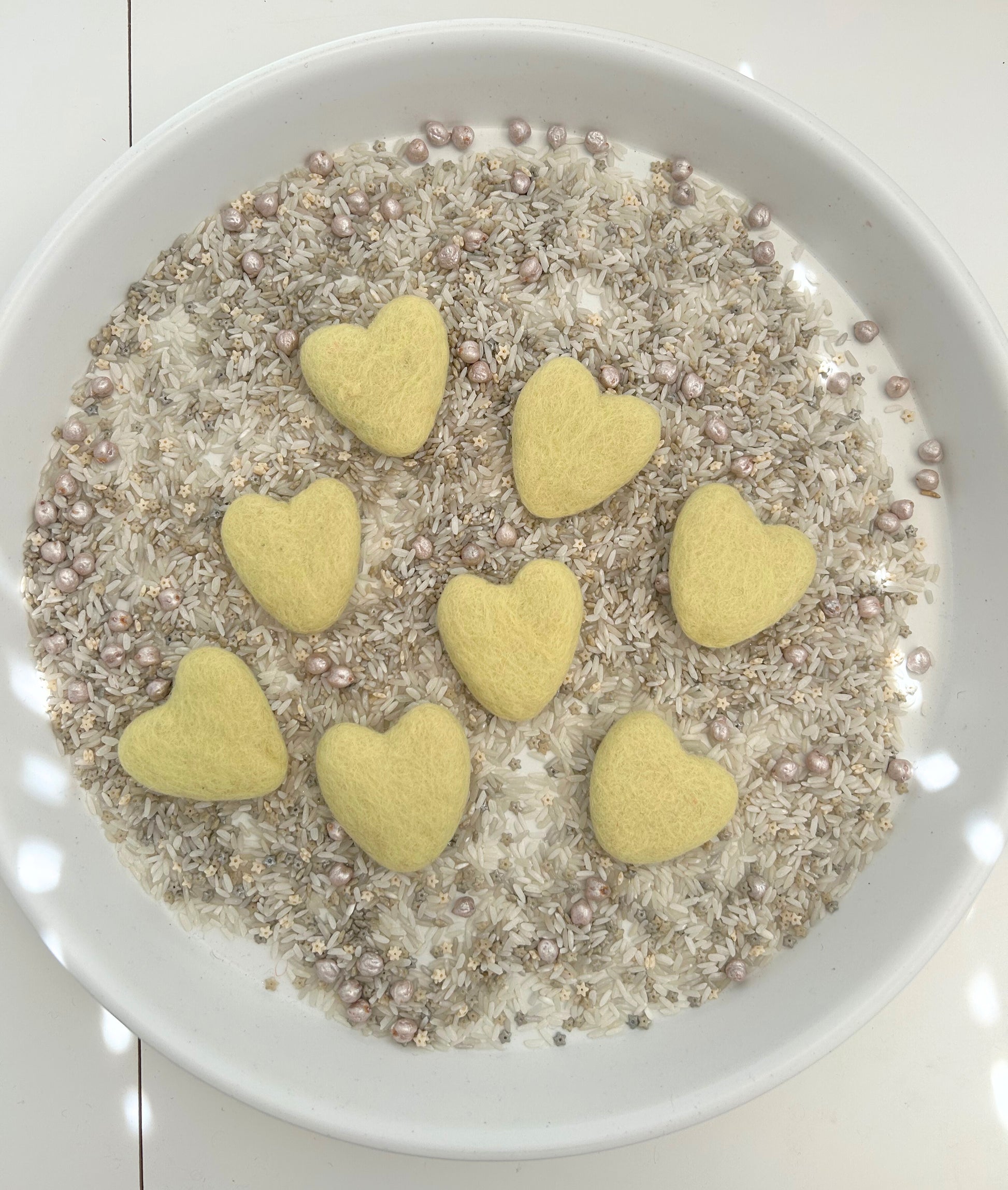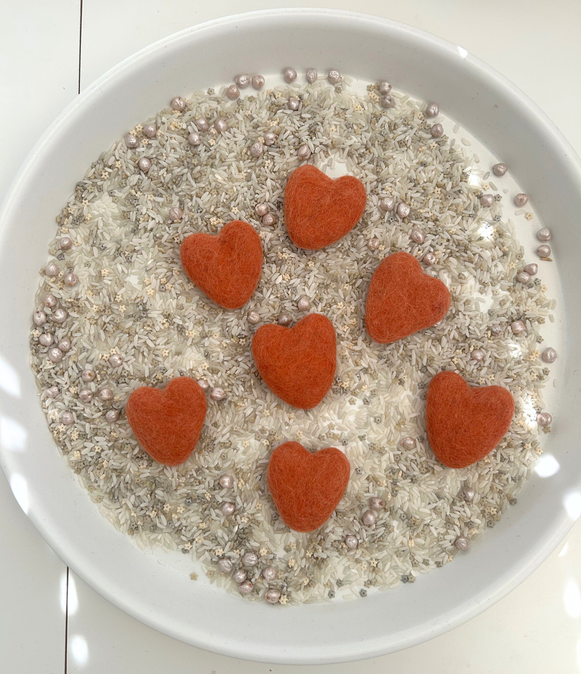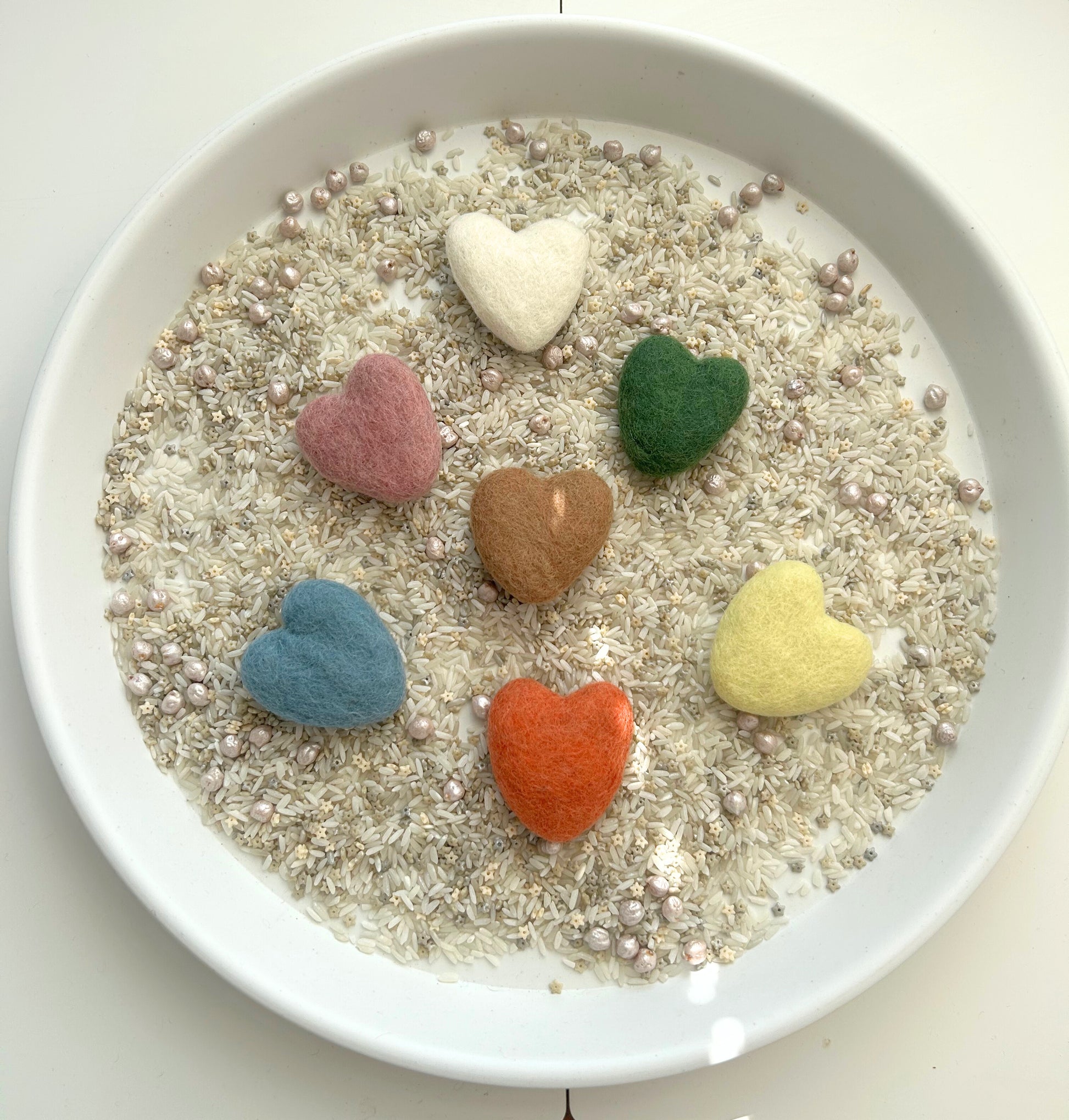 Soft, colourful, and versatile, these felt heart loose parts are perfect for open-ended play and learning. Each heart is made from high-quality felt, providing a tactile, safe material for little hands. Ideal for counting, sorting, colour recognition, pattern-making, and sensory bins, these pieces encourage creativity, fine motor skills, and imaginative play. Suitable for ages 3 and up, they’re a charming addition to any early learning or Montessori-inspired environment.