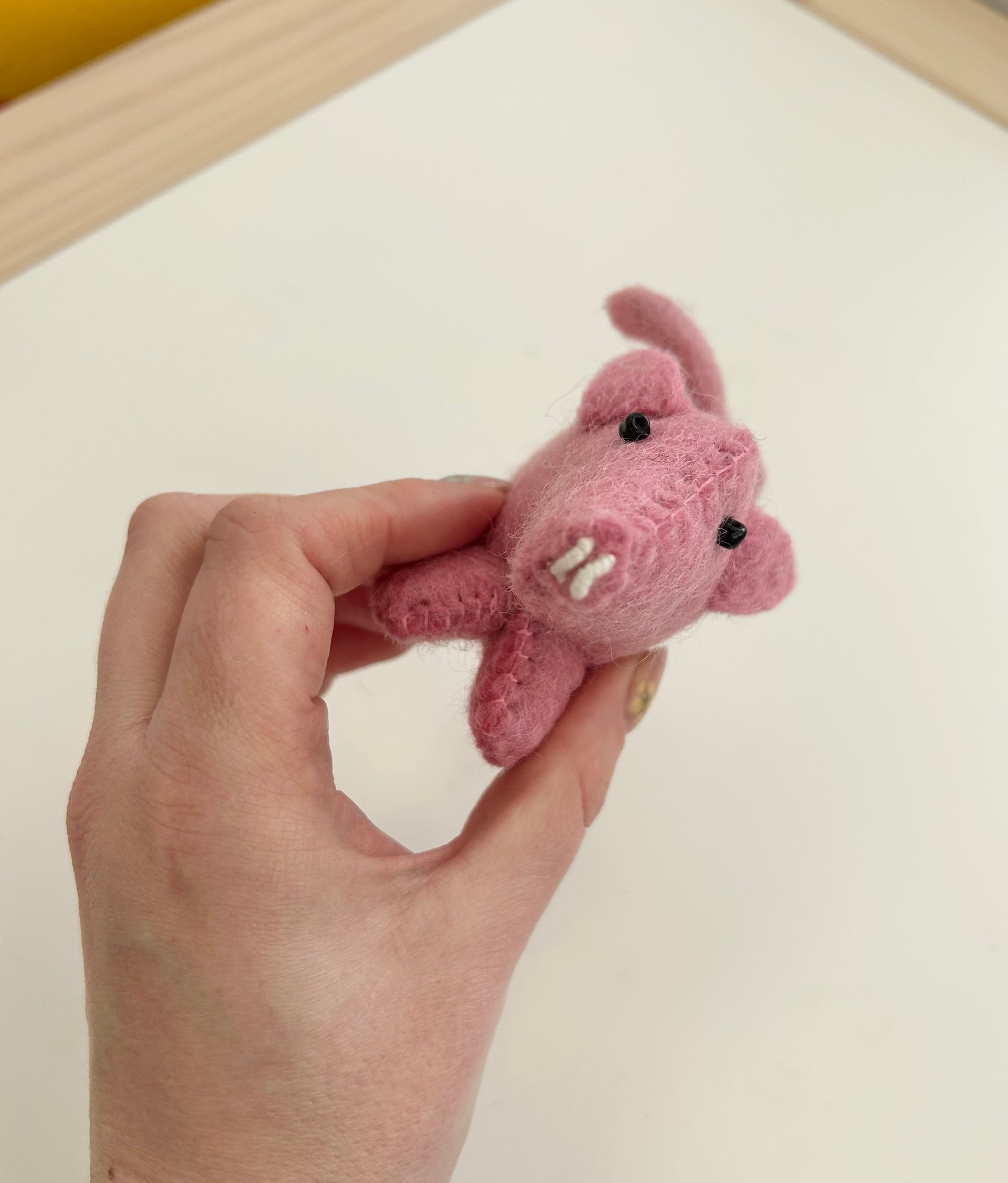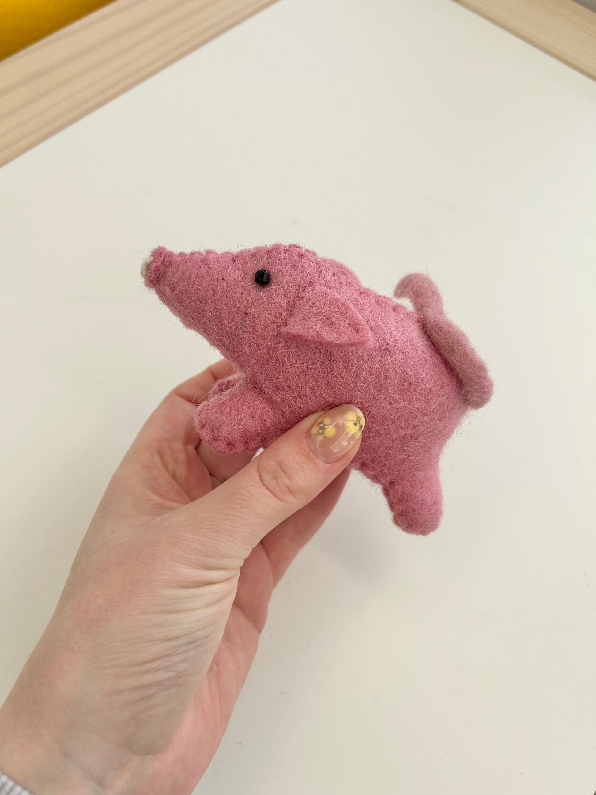 This felt Pig can be used as a decorative piece, a toy for children, or a unique gift. It embodies the rustic charm of farm life and is often crafted with a focus on softness and durability, making it a perfect addition to any collection of handmade animals or as a fun, tactile experience for kids.