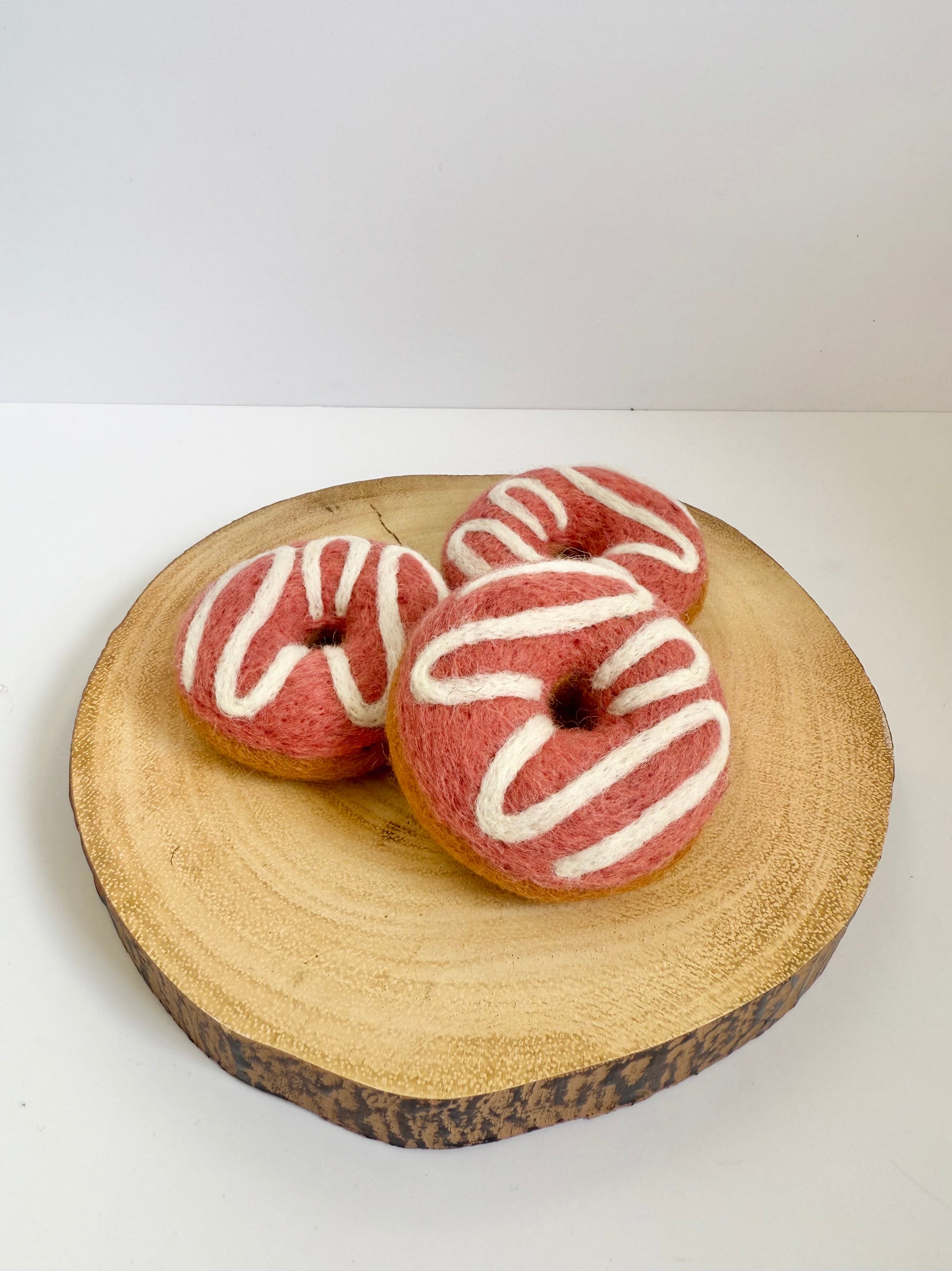 This adorable felt donut is topped with pink icing that looks good enough to eat! Soft and colourful, it’s perfect for pretend café fun, tea parties, or adding a splash of sweetness to a play kitchen. Light, durable, and easy for little hands to hold. kids will love serving it up again and again.