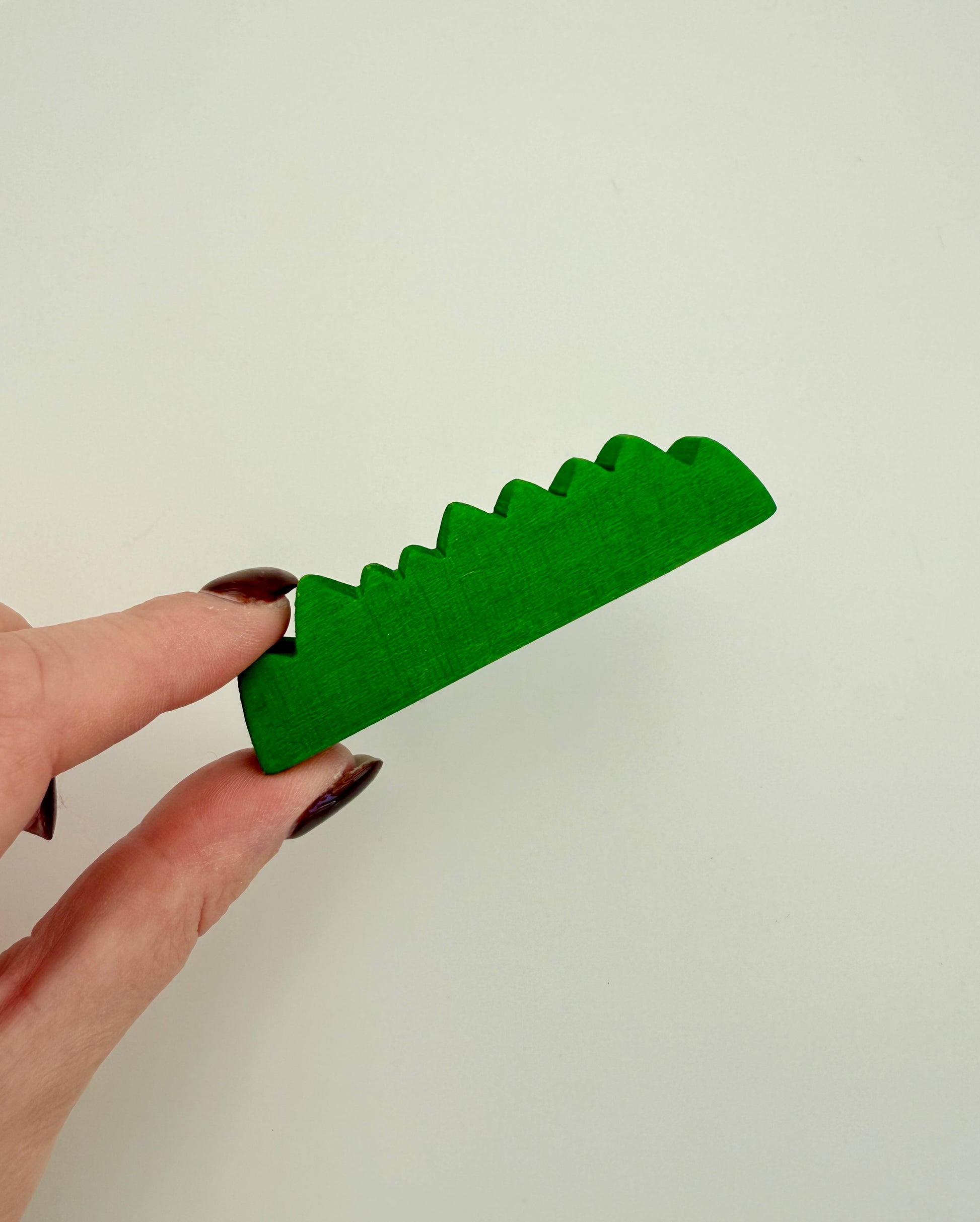 This slim, hand-carved wooden grass piece is painted in a deep green hue, with gentle ridges suggesting layered foliage. Simple and versatile, it complements nature-themed play or display beautifully, adding a touch of lush greenery to any setup.