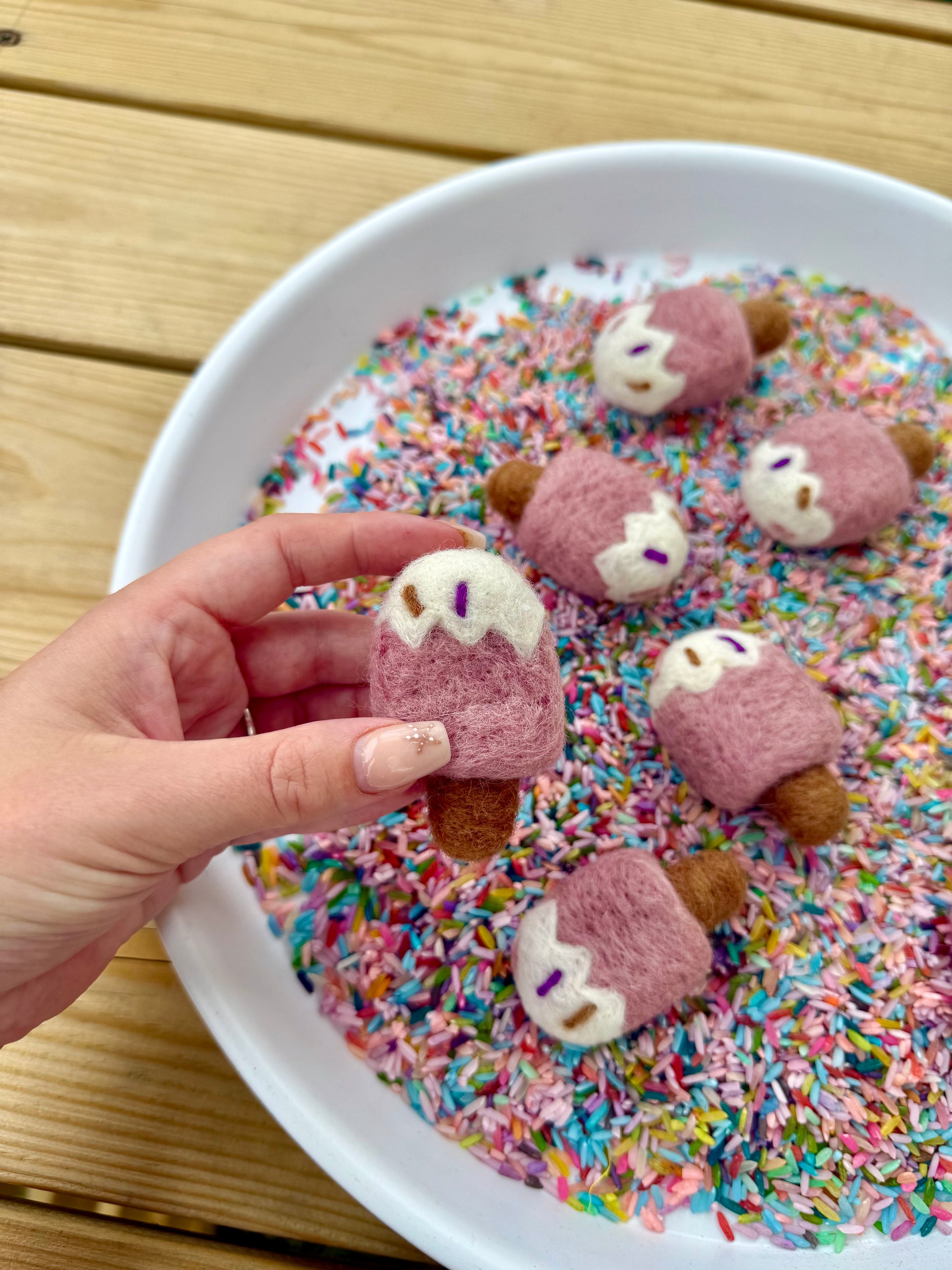 Add a pop of colour and fun to your sensory play with these mini ice lolly loose parts! Perfectly sized for small hands, these adorable popsicle-shaped pieces encourage imaginative play, sorting, counting, pattern-making, and storytelling. Ideal for tinker trays, small world setups, or seasonal themes, they’re a charming way to support fine motor skills, colour recognition, and early math concepts