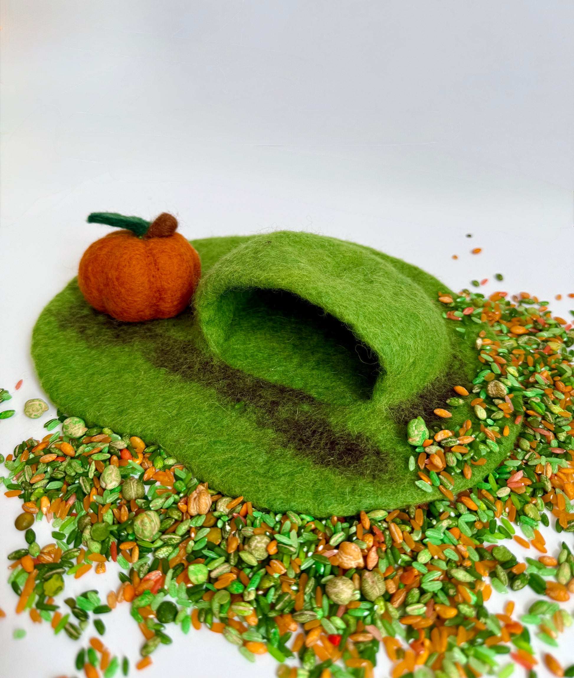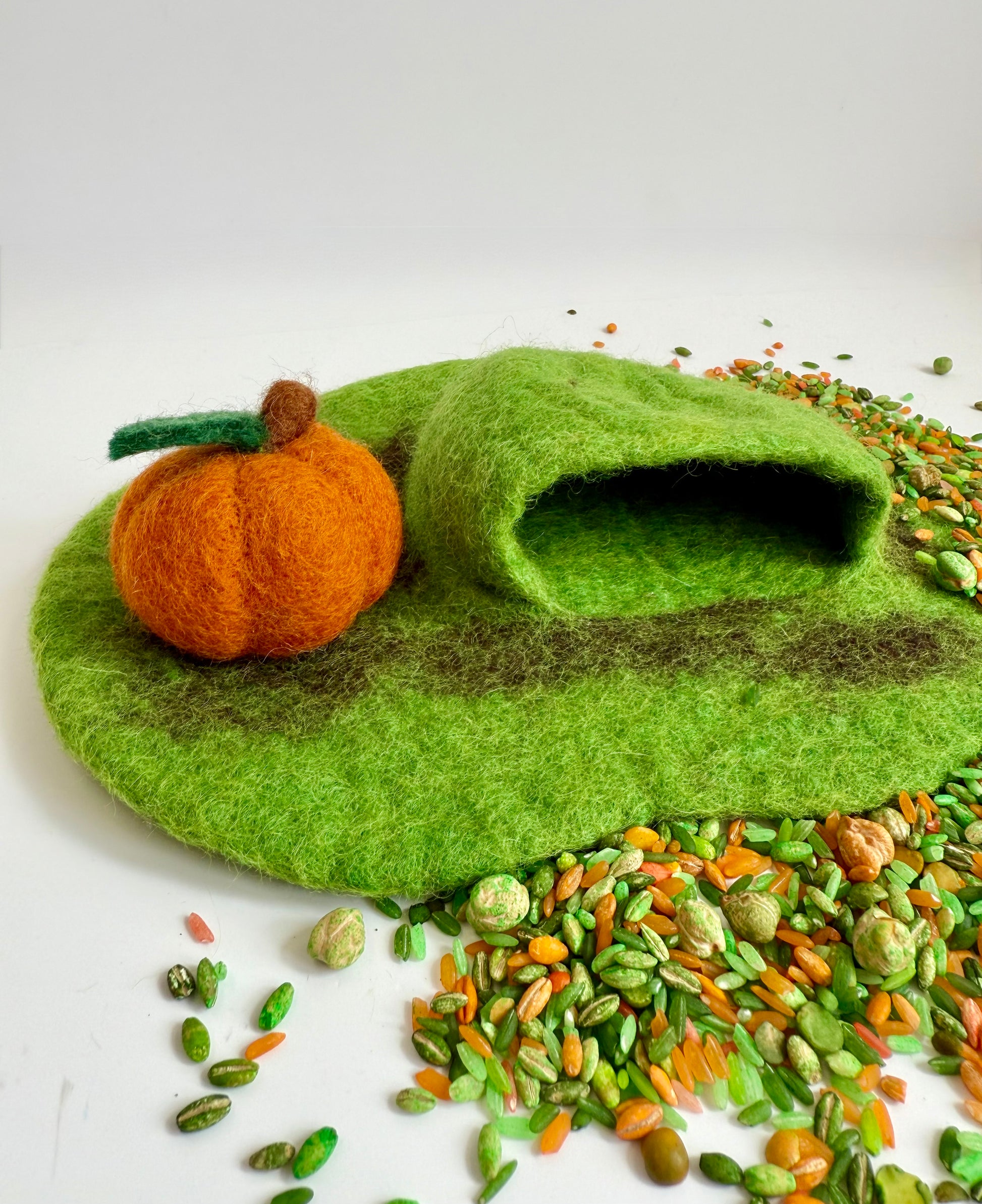 Bring a touch of magic to small world play with this charming Pumpkin mini cave, handcrafted from soft, durable felt. Its hollow interior is perfect for tiny figures, fairies, or woodland creatures, encouraging imaginative storytelling and creative play.