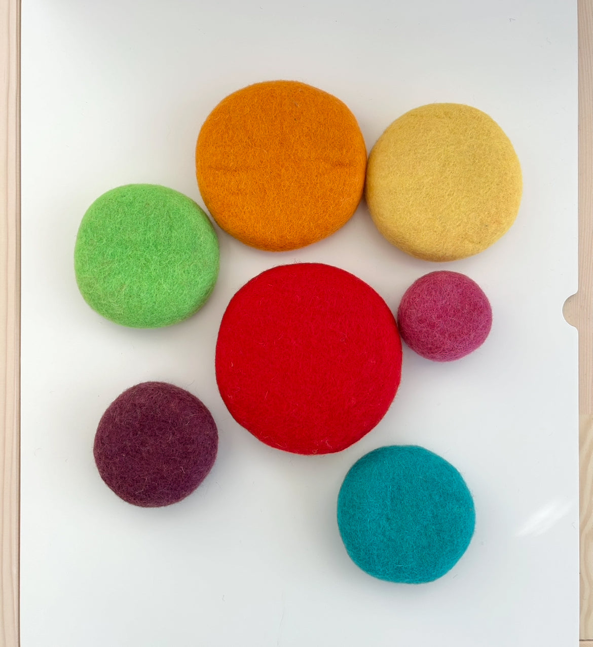 These children’s felt rainbow stacking pebbles are a charming and tactile playtime accessory that encourages both creativity and fine motor skills. Made from soft, 100% New Zealand, each pebble is carefully hand-stitched and designed in a variety of vibrant rainbow colours. The smooth, rounded shapes are perfect for stacking, sorting, and building, offering endless opportunities for imaginative play.