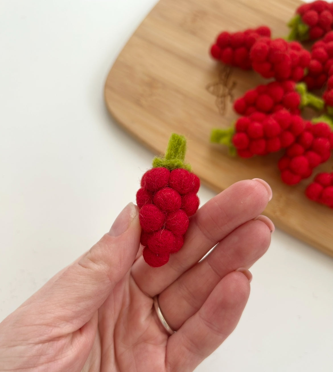 This needle-felted raspberry is a delightful and realistic handmade piece, crafted with intricate attention to detail. Using the traditional technique of needle felting, the raspberry is formed from soft, high-quality wool fibers, creating a vibrant, textured surface that mimics the natural look of the fruit. The bright pink colour and carefully sculpted shape make it a charming addition to any play kitchen, nursery, or decorative display.